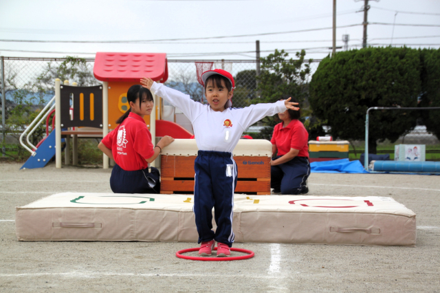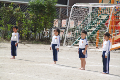 午後から雨が降るかもしれないため。園児集合時間を予定より10分早め、集まり次第演技開始になります。