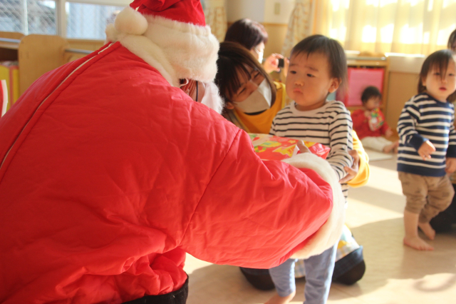 サンタさんが来てプレゼントを手渡ししましたよ。